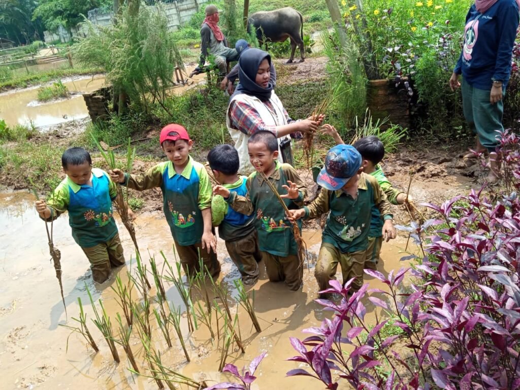 Waktu bermain di luar ruangan untuk melatih kekuatan fisik dan keterampilan sosial, seperti berlari, bermain perosotan, atau berkebun kecil.